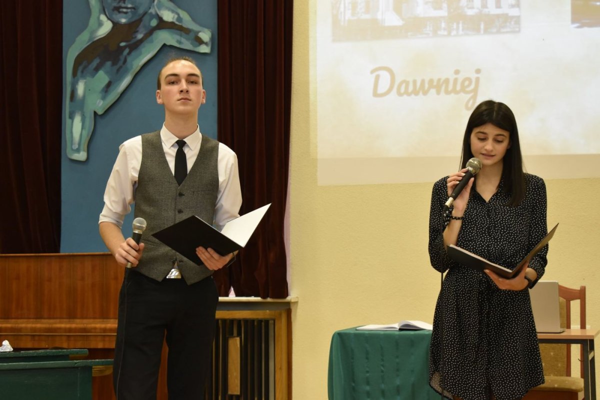 W piątkowy poranek, 5 listopada, odbyło się spotkanie emerytowanych nauczycieli naszej szkoły z młodzieżą. Autorką scenariusza uroczystości i jego reżyserką była pani Małgorzata Lis, która zaangażowała w przedsięwzięcie klasę 3ag. W rolę konferansjerów wcieliła się Izabela Ciężka i Dawid Michniewski. Swoimi wspomnieniami dzielili się zarówno Profesorowie, jak i obecni Nauczyciele – Absolwenci I LO. Przytaczali anegdoty, z sentymentem przywoływali sytuacje i zdarzenia, których byli świadkami, z rozrzewnieniem opowiadali o swych przeżyciach. Spotkanie okraszone zostało muzycznie oraz teatralnie. Jego uczestnicy z łezką w oku obejrzeli archiwalne zdjęcia.
