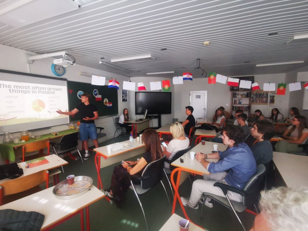 Poniedziałek rozpoczęliśmy od uroczystego powitania przez chorwackich nauczycieli oraz dyrektorkę szkoły, która nas gościła. Uczniowie, podobnie jak w poprzednich mobilnościach, zaprezentowali swoje prace – tym razem dotyczące gleby, jej ochrony i praktyk rolniczych w każdym z krajów partnerskich. Nie zabrakło także zadań integracyjnych, które pozwoliły lepiej poznać naszych chorwackich gospodarzy oraz uczestników z Portugalii.